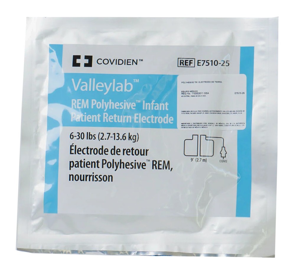 / E7510-25 | PLACA DE ELECTROCIRUGIA INFANTIL REM POLYHESIVE II CON CABLE C/25 PIEZAS
