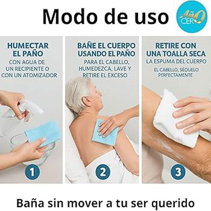 Un paño alcanza para bañar a una persona adulta de hasta 100kg de masa corporal, obteniendo una limpieza total, secilla y efectiva.